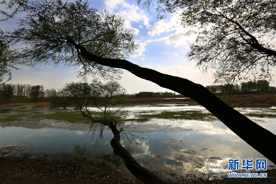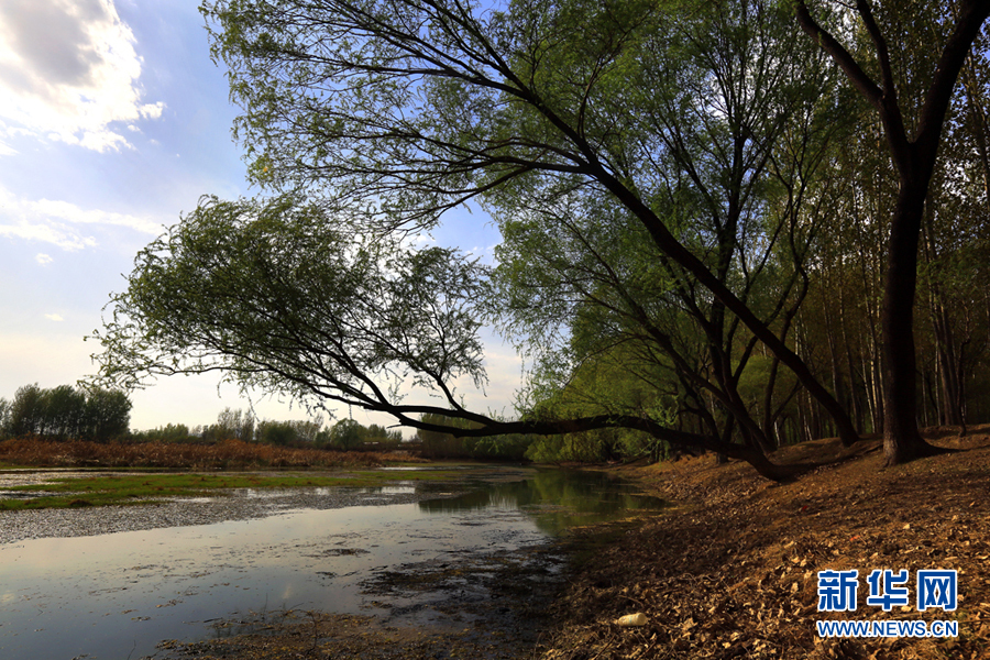 淋河好女塔水岸的原生態(tài)旱柳成為一道獨特的生態(tài)景觀。新華網(wǎng)發(fā)(李江 攝)