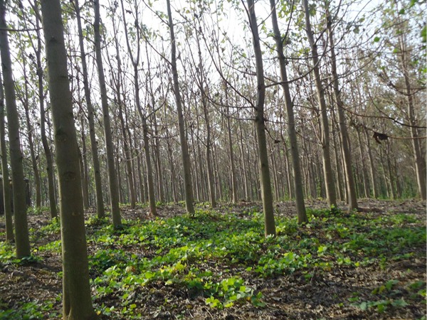 定植后生長不好的幼樹,可在早春2月平茬。封土成丘,待萌發(fā)10~15cm高時,留1壯芽,其余抹去。并配合松土施肥,可以重新長成健壯幼樹。平茬的泡桐,樹干通直,基部沒有明顯的彎曲,提高了泡桐的經(jīng)濟利用價值。