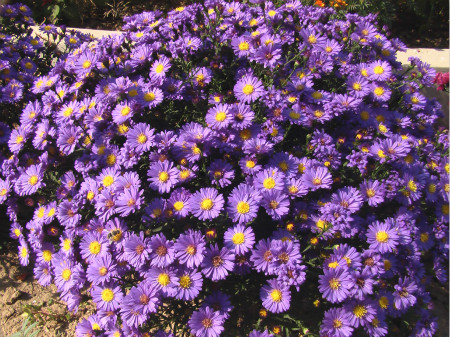 紫菀的花期在秋天,花冠呈藍(lán)紫色。荷蘭菊的花期在8~10月之間,有些品種的荷蘭菊在春天和秋天都會(huì)開(kāi)花,比較適合做盆栽。